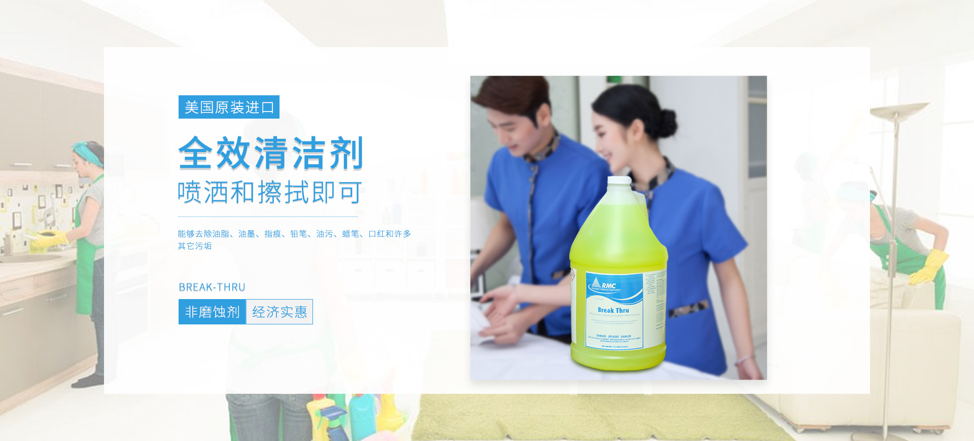 新朗環(huán)境自2015年起與美國具百年歷史的跨國企業RMC(Rochester Midland Corporation)合作, 進口 RMC用于機械制造、交通運輸、航天航空、石油化工、食品禽肉乳制品加工等工業生產制造行業的專業清洗、滅菌系列產品,以及酒店、CBD大廈、學校(包括幼稚園)、醫療機構、百貨商場、養殖業、餐飲業等商用行業清潔、消毒系列產品,還有專用于各個行業單位“廁所革命”的公共衛生間根源除味第5代SANOR?衛生間自動滴管系統、第6代百屋潔SIOGIENIUS?電子控制衛生間自動滴注系統等系列產品項目。